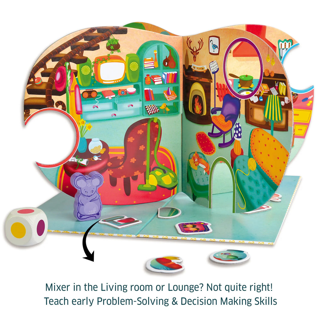 In Tidy Up, the Rats are racing through their messy house trying to return every item to its proper room! Players roll the dice, pick an item, and decide where it belongs—does the plate go in the kitchen or the cupboard? By sorting and organizing as they play, children sharpen important categorization and language skills while learning responsibility.