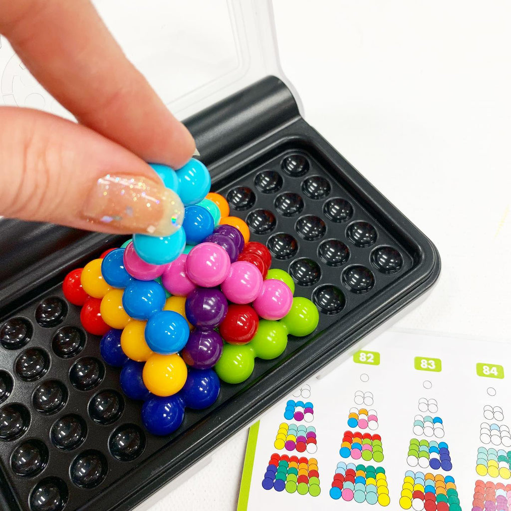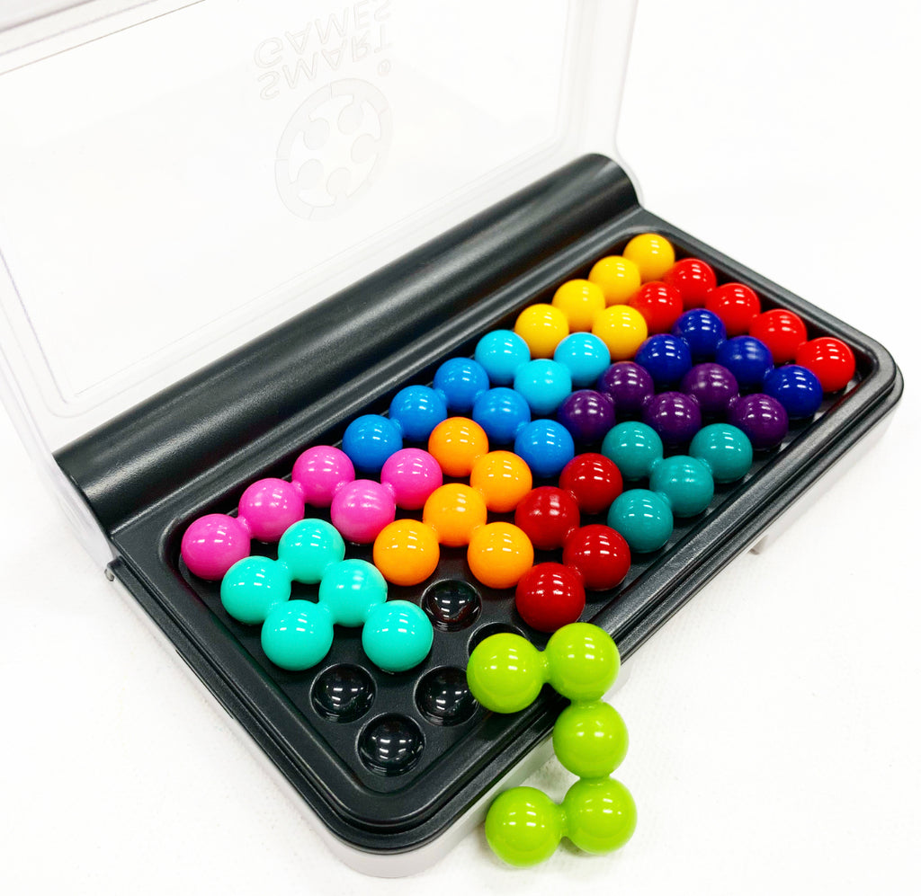 SmartGames includes solutions and a beautiful housing to store the enclosed challenge booklet, rules and colourful pieces.