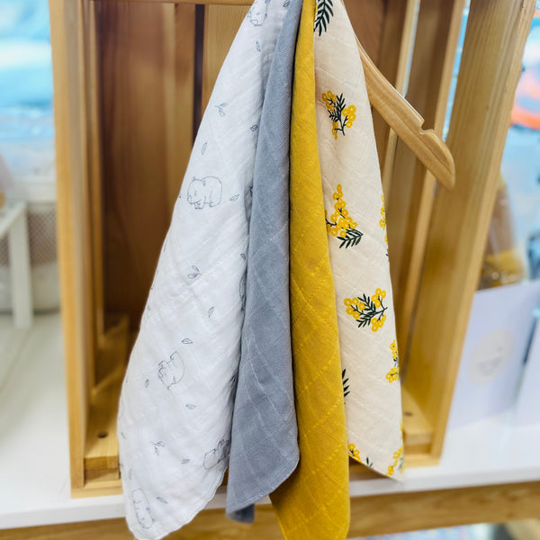 Our wash cloths can be used for bathing, burping, and gently wiping those tiny faces. Keep a few handy, you’ll need them!