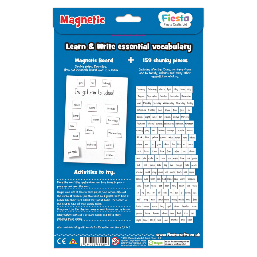 Comes with a magnetic board and 160 high frequency words for this age group, all with magnetic backing.