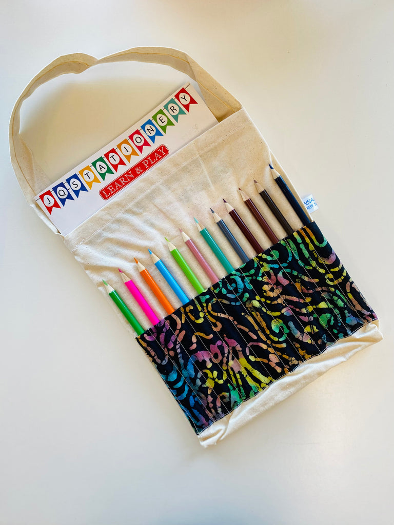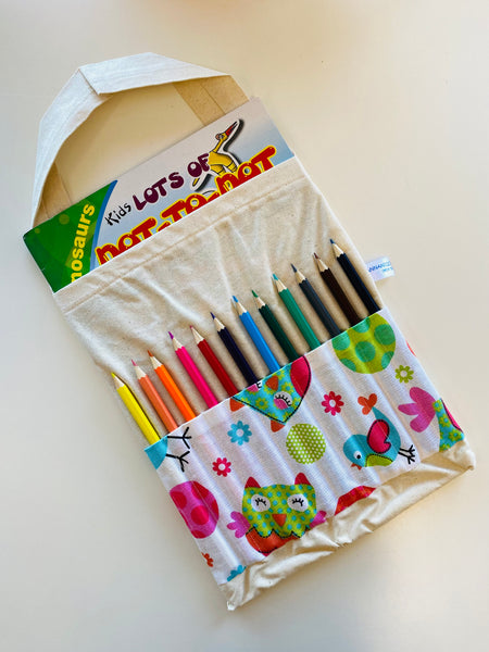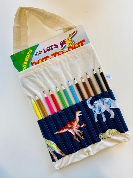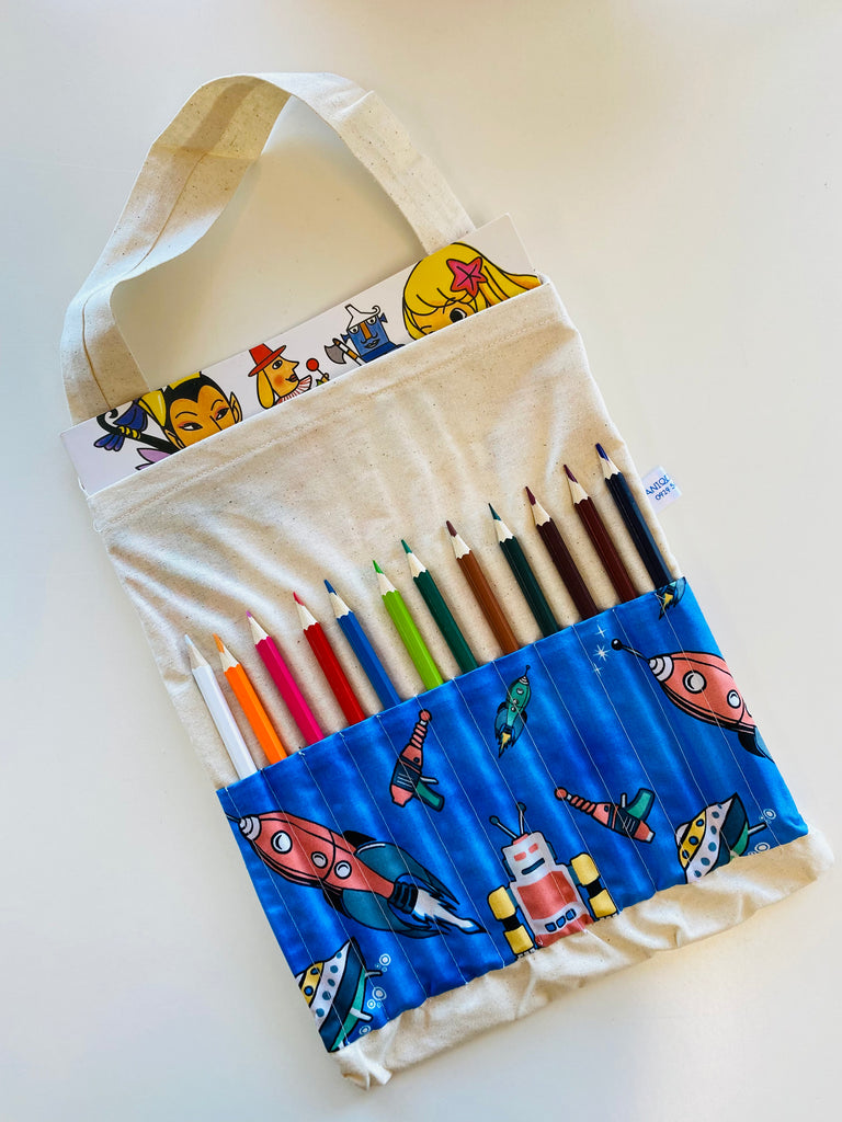 The perfect Carry Tote Bag with a special place for your pencils or pens on front of bag and colouring book inside.