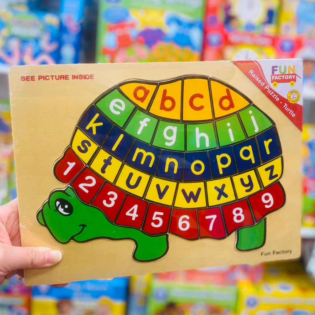 Fun Factory Raised Puzzle ā Turtle (Lowercase Alphabet & Numbers Puzzle)
